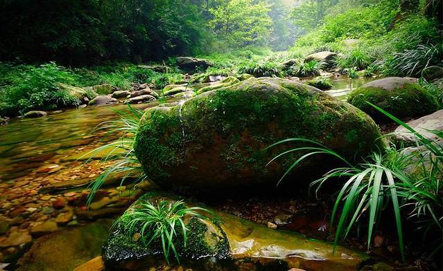 虽然是张家界新开发的一个景区,不过景色还是超赞的,这里是温带卡斯特地形地貌,流水与岩石地形互相交错在一起,动植物非常多,五月初的天气里鸟儿嬉戏,这个季节估计是在筑巢生小鸟吧哈哈哈,叽叽喳喳听得我们也很开心。