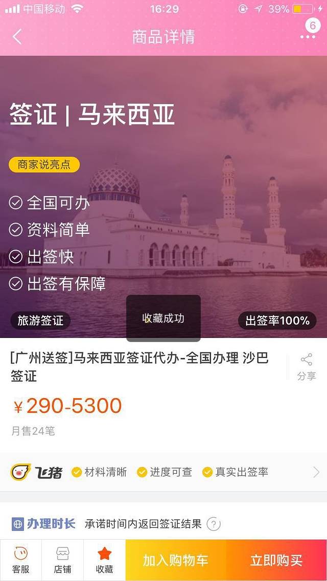 马来西亚签证通过率你是不用担心的,淘宝真是万能的啊。提前拍个近半年的白底彩照(你跟照相馆的人说马来西亚签证,他们就知道尺寸的啦,好像是2寸),然后是提前2个星期去淘宝弄的护照纸质签证,我知道这种是最贵的(可以直接有电子签证的),但是怕有啥万一,毕竟带着我妈不方便哈哈哈。这里很多选项啊,选一个适合你的。我们两个人花了580(签证费)+22快递费=602元(挺好哒,因为还能加微信问你签证的进度) 。人均301(包括运费)