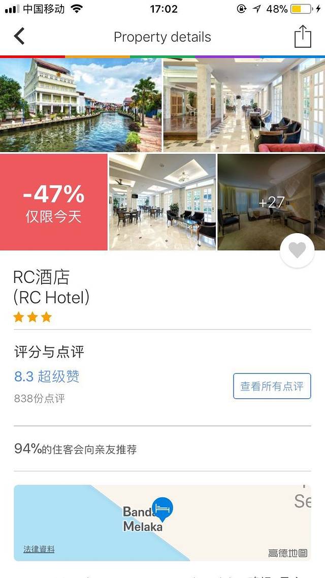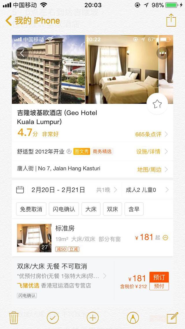 这次去马六甲(RC Hotel)、吉隆坡(GEO Hotel)、兰卡威(Resorts World Langkawi)三个地方,选择交通比较便利的酒店,用Agoda定的,十分满意。
