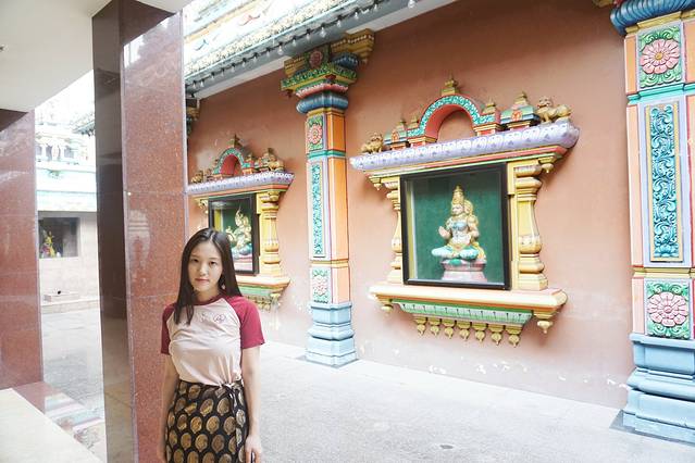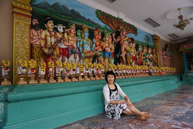 印度庙,不用门票。刚好门口有个印度大叔在念经祈祷。进去里面要脱鞋子,鞋子保管费0.2RM,然后由于我今天穿的是短裤,门口专门一个大叔给了我一条围巾给我围住大腿(免费),参观完还回去就行。