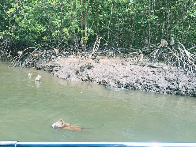 猴子萌萌哒,会游泳,吃西瓜皮跟花生,我们在快艇上给它们投食。