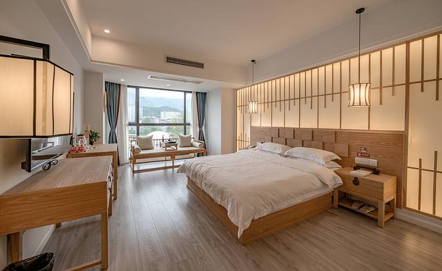 当天晚上到达张家界荷花机场,已经是凌晨了。20分钟的路程就到了酒店,房间很满意,在天门山索道旁边方便第二天出行,酒店房间很安静一点也不吵,于是乎和朋友们舒舒服服的睡了个安心觉,订好时间早上8点出发。 第一天: