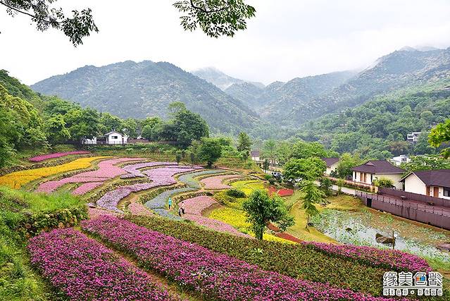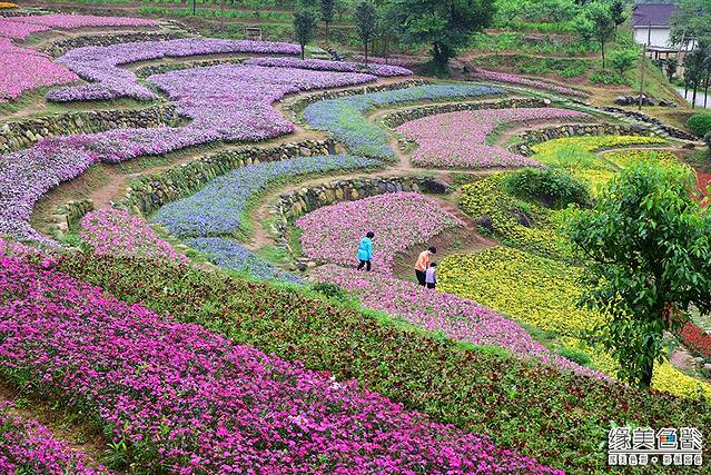 层层花海随着山势延绵起伏,五彩缤纷,如置身于彩色的童话世界。每一缕风,都掺杂着花香的味道,甚至可以听见,花海中窃窃私语的声音,静谧,安然。