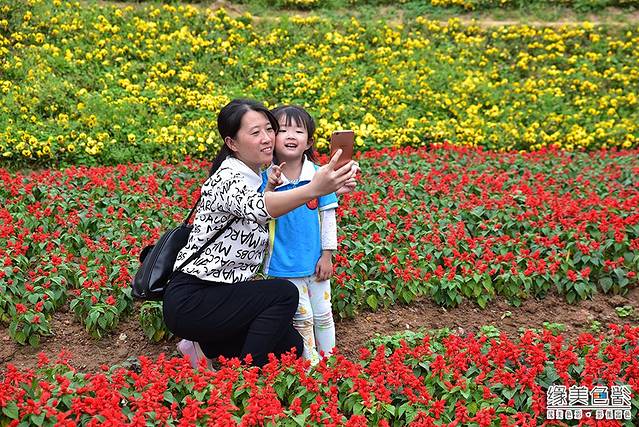 孩子们高兴地在花海中飞奔,像蝴蝶一样从这边跑到那边,还时不时发出欢呼的声音,掩饰不住内心的激动和兴奋,也是,从小在城市长大的孩子很少机会看到这么大的花海,且品种这么多,颜色这么鲜艳,美景当然不能错过,很快进入了拍照模式。