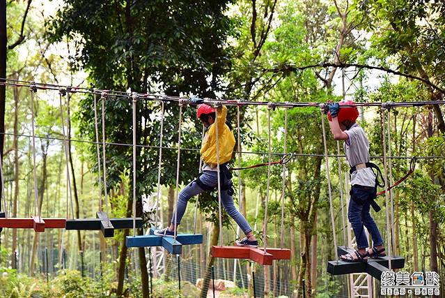 森林探险,这个在高空中在丛林间穿梭,过悬索桥、走钢丝、梅花桩、蜘蛛网、高空滑翔……各项挑战,既考验你的胆量更考验你的体力,耐力,是激发孩子潜能,挑战自我的好项目。