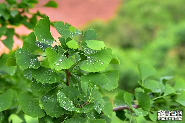 天空下着小雨,雨滴落在叶子上,像一颗颗透明的小珍珠在叶子上晃来晃去,非常好看。