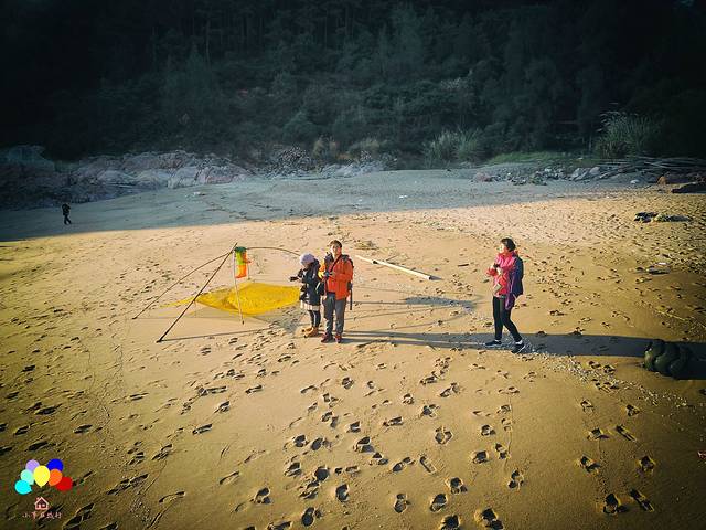 但是到了那里,发现上山的路在修路上不去了。就想掉头去南岐的,这时来了个当地的渔夫小哥,说带我们从海边走过去,现在是退潮可以走过去,但是日出后涨潮就走不回来了,到时候他开渔船把我们再拉回来,一人20元,既然来了也不能就这样回去吧,所以我们四个人就跟小哥走过去了。小哥把我们放到沙滩,就走了,去接下批游客了。我们得自己爬上山,山上没有开好的路,所以只能攀爬上去,好在不是很陡。