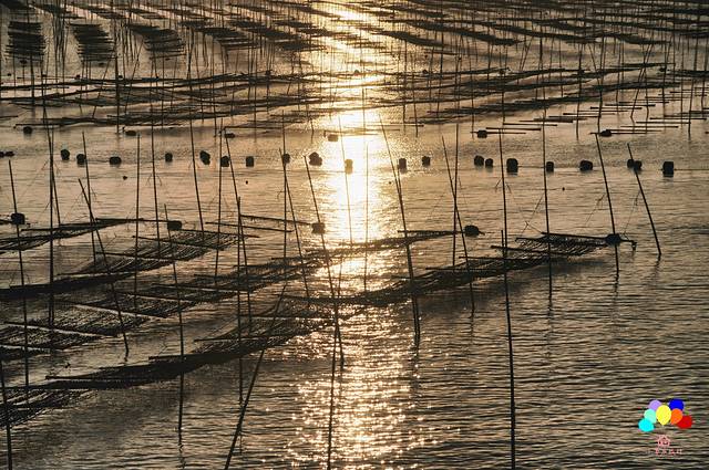 在去小皓的路上就可以看到海上密密麻麻的杆网。