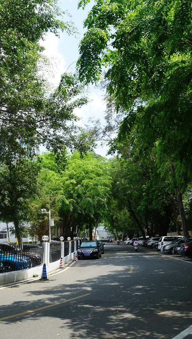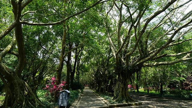 景区内的林荫道,热带树木又高又茂盛