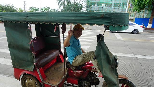 这种三轮车,做起来,一路狂奔,震动麻麻的,有点爽,司机师傅是本地人,拍张照片留念下\(^o^)/
