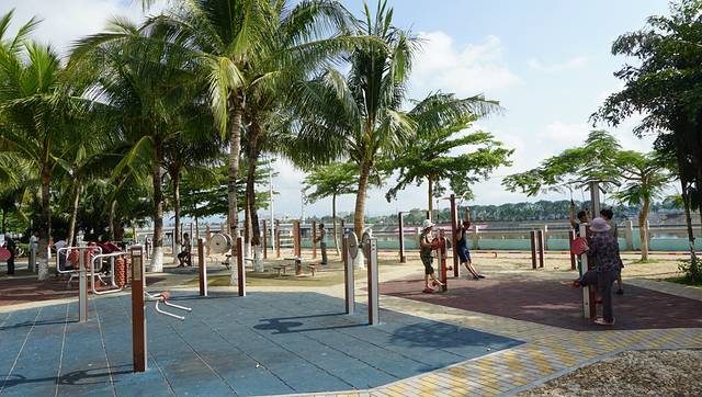 清晨,陵水河畔公园内锻炼的人,发现外省老年人居多,多数都是来这里养老的。楼主和他们一起锻炼,竟然搞不过他们,我都汗流浃背了,他们没什么事,有点汗颜啊(楼主平时还有跑步,运动一下)