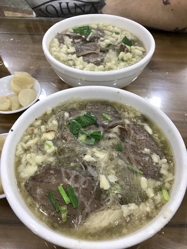 羊肉泡馍和糖蒜很搭,吃起来一点也不腻