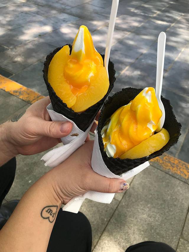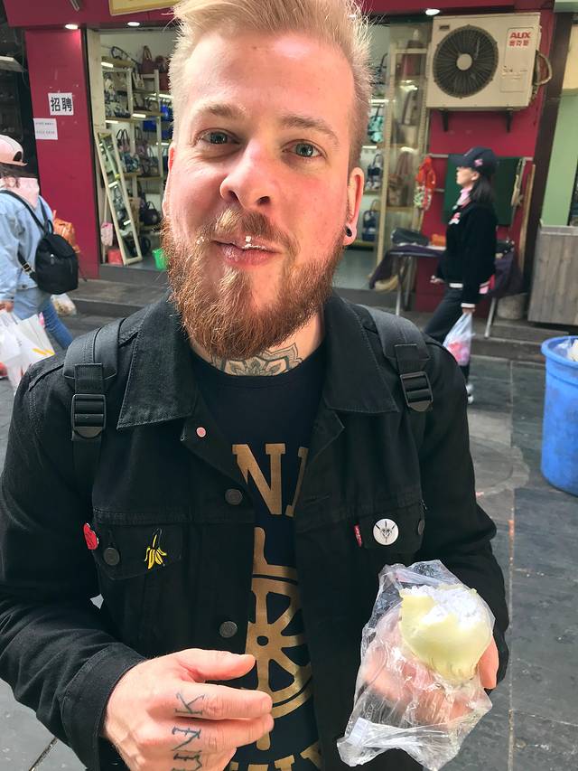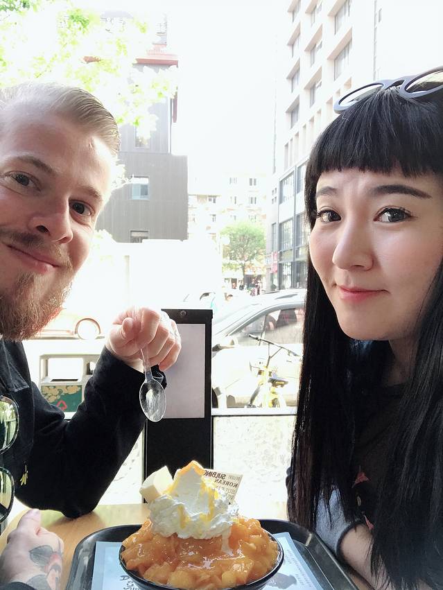 吃饱喝足,出发去永宁门,按照欧洲人生活的习惯,他们总喜欢在饭后吃一些甜品,所以路上正好路过一家“雪花冰” ,男票就走不动了。