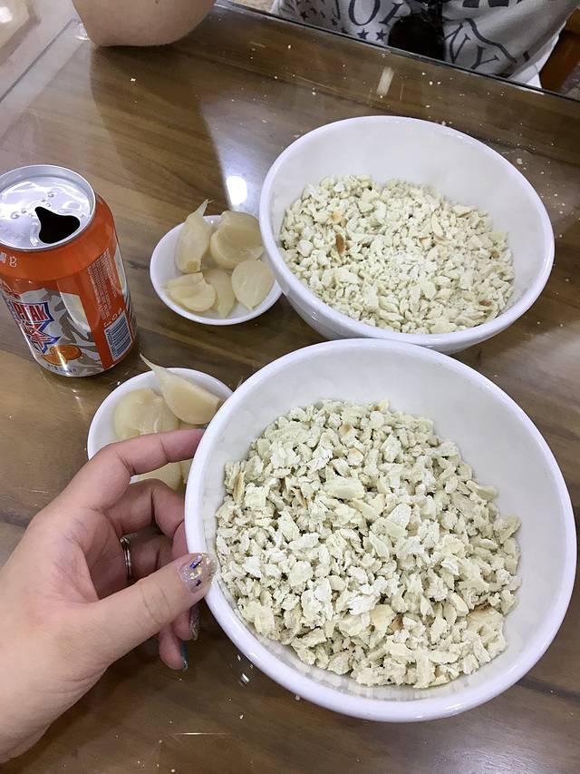 先自己掰馍,很耗费体力啊,越碎越好,才会入味,这方面我完全输给了处女座男朋友