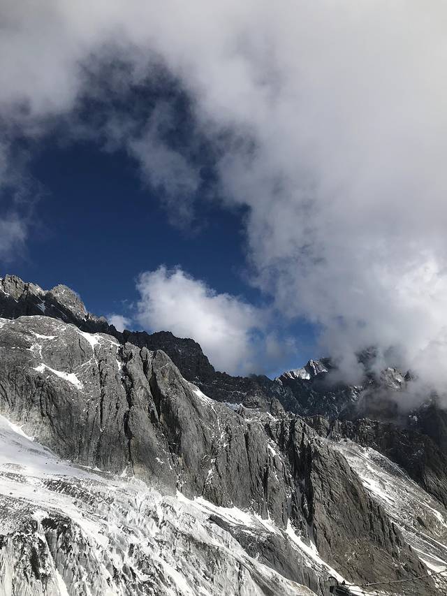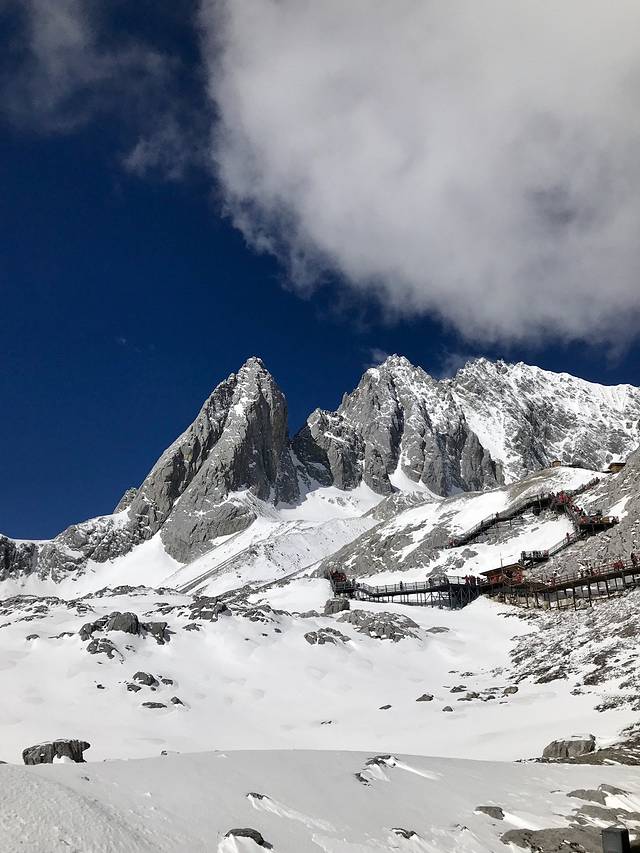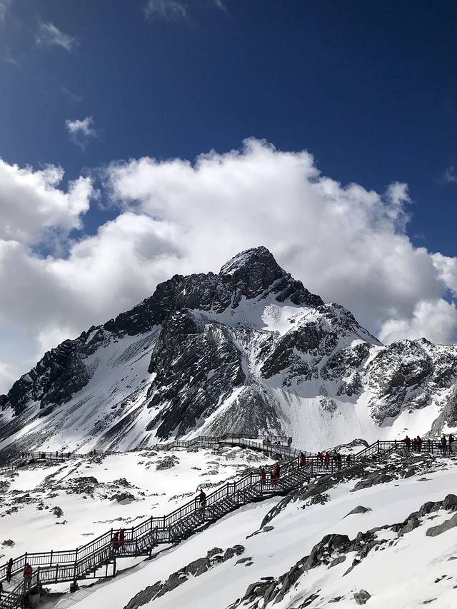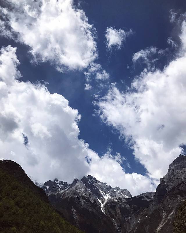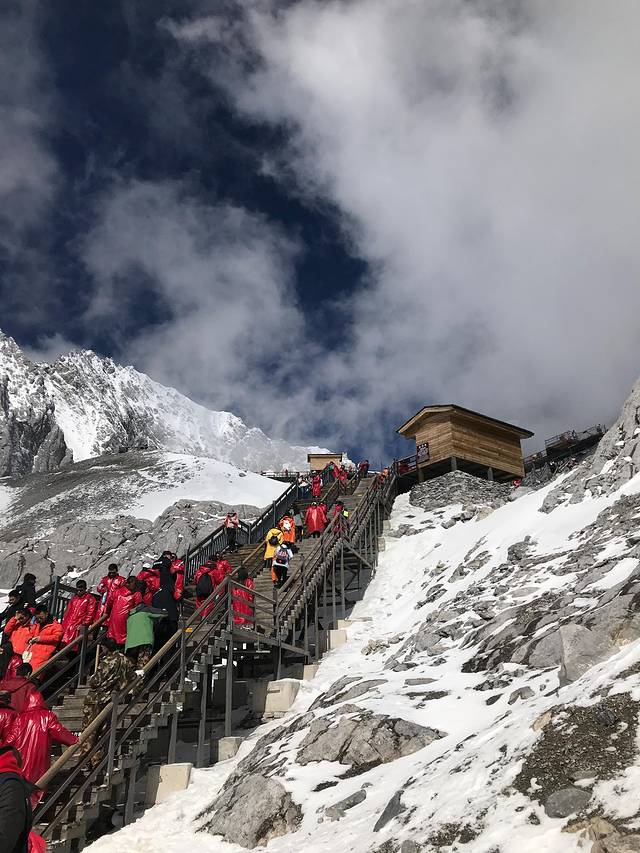 一直担心玉龙雪山刮风会影响我们上山,然而丽江的天气还是很给力的,昨夜也下了雪,雪山上都是积雪,我们太幸运了。