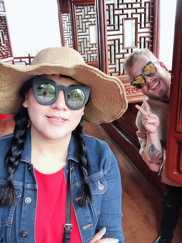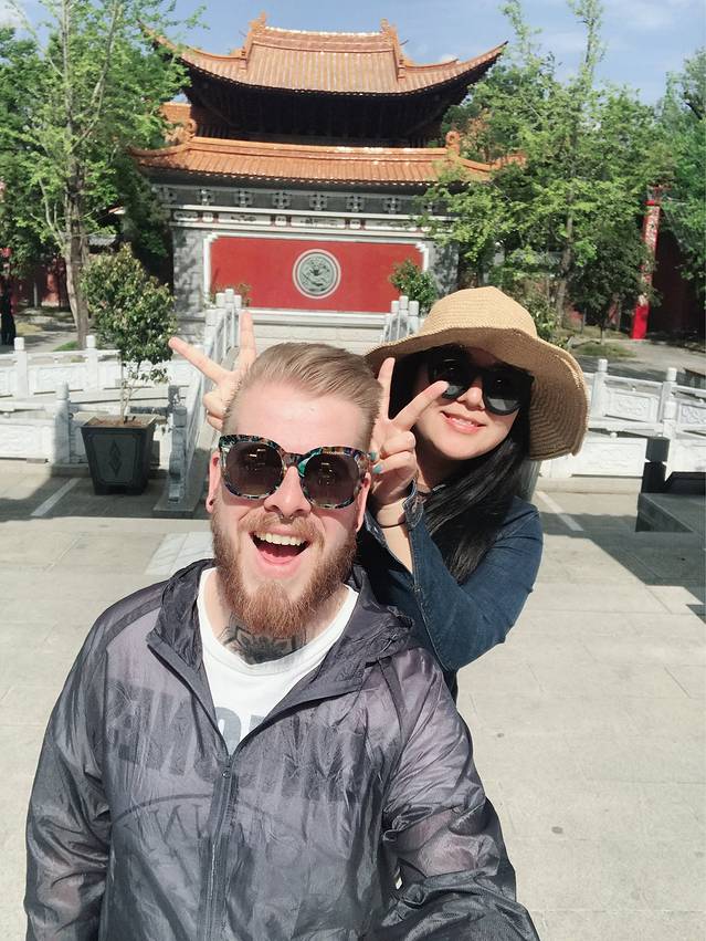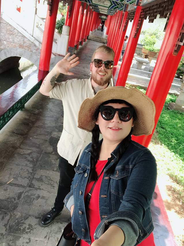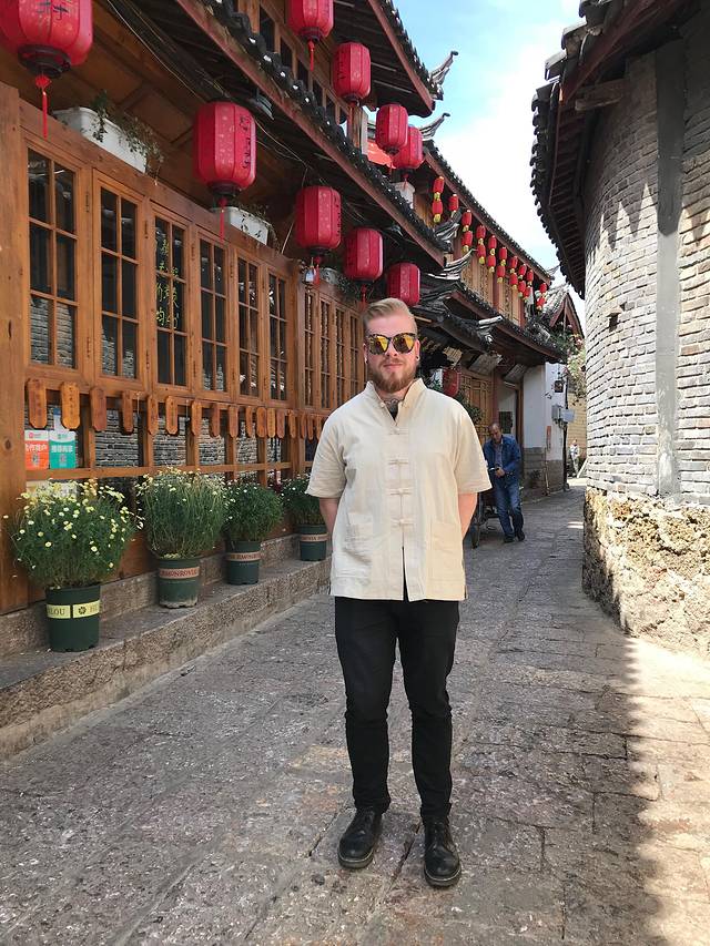 五华楼建筑的墙面,威廉哥哥似乎对中国的盘扣没有抵抗力,所以我们在五华楼附近的小店买了一件这样的衣服,感觉有点像公园里面练太极的大爷。老板一开始要120,然后我说50,老板说80,我说50,老板说60,我说50,老板说55,给点利润钱,我说50,不卖我走了,老板说好好好,50成交。