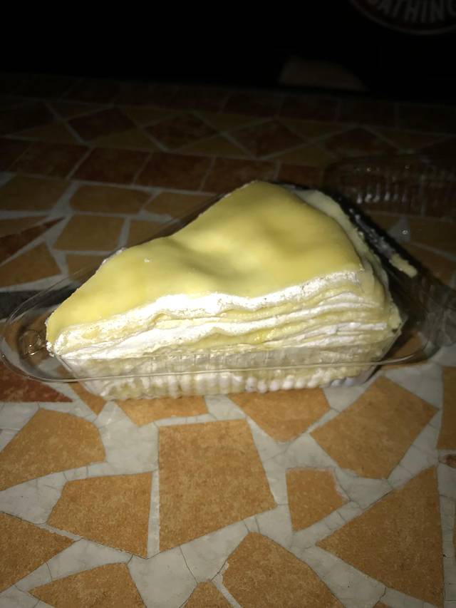 买了榴莲千层 在天台吃,即使风大,还是很浪漫