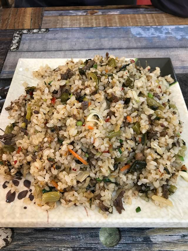 在路边的小店点了一份牛肉酸菜炒饭,随便吃点