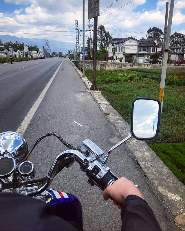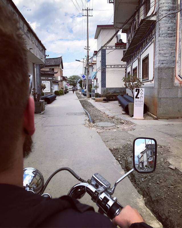 早上起床,吃了早点(米线)我们就在客栈旁边的摩托车店租了一辆电动摩托车,84点的满电,两个人可以从大理骑到喜洲,一天 80元,押金200 ,晚上八点还车就行了。