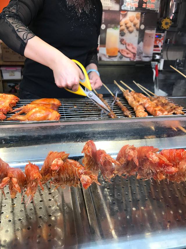 然后,我们看到了鸡翅包饭。。。没吃过,味道还可以,里面的米饭黏黏糯糯,20 元一只,物价跟北京差不多