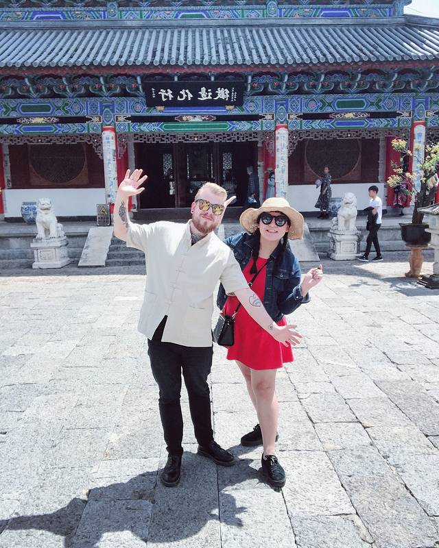 吃饱喝足,继续上路,喜洲古镇里面也有很多拍婚纱照的情侣,很多白族特色的建筑都是他们的背景