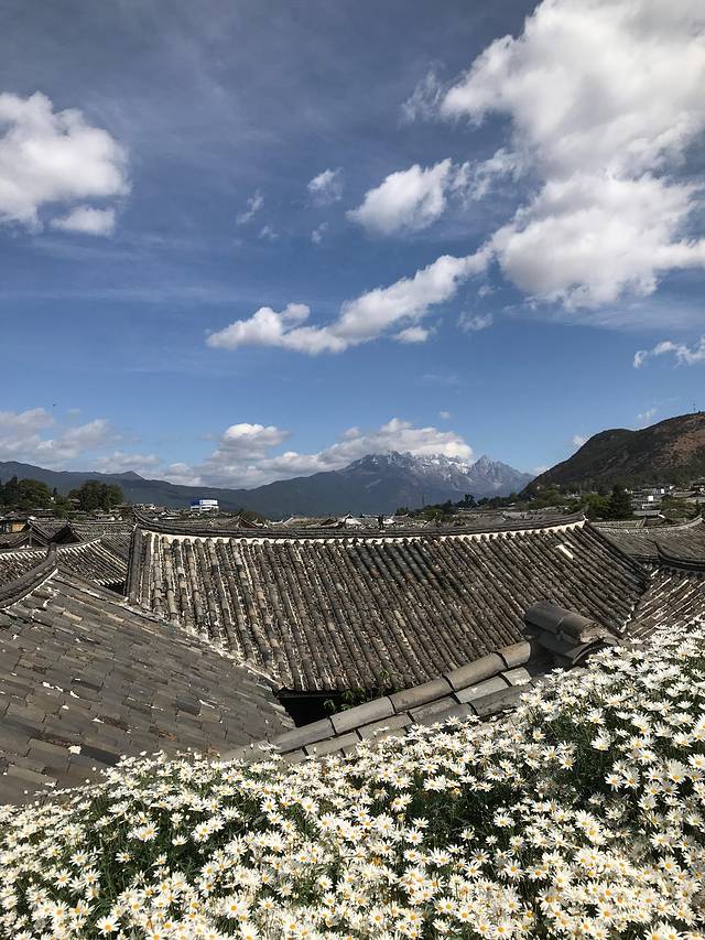 在天台晒晒太阳能看到玉龙雪山,昨夜刚刚下过雪