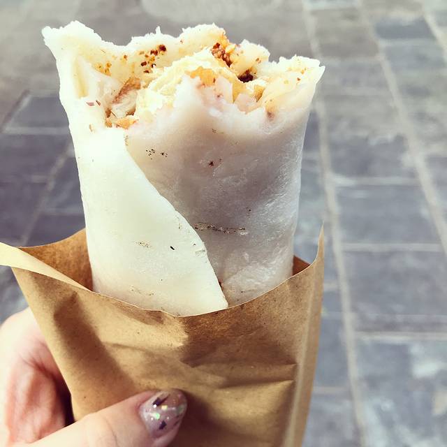 回酒店路上买了这个烤饵块,8块钱一个,外面是饵块,里面是类似油条一样的东西,还有很多种酱料,味道刚开始吃起来一般,然后再吃就觉得 ei 还不错哦