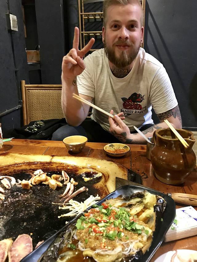 威廉的中国胃,喜欢吃烤鱿鱼,还要放很多辣椒,很多外国人都吃不了辣,看来他上辈子真的是中国人。。。