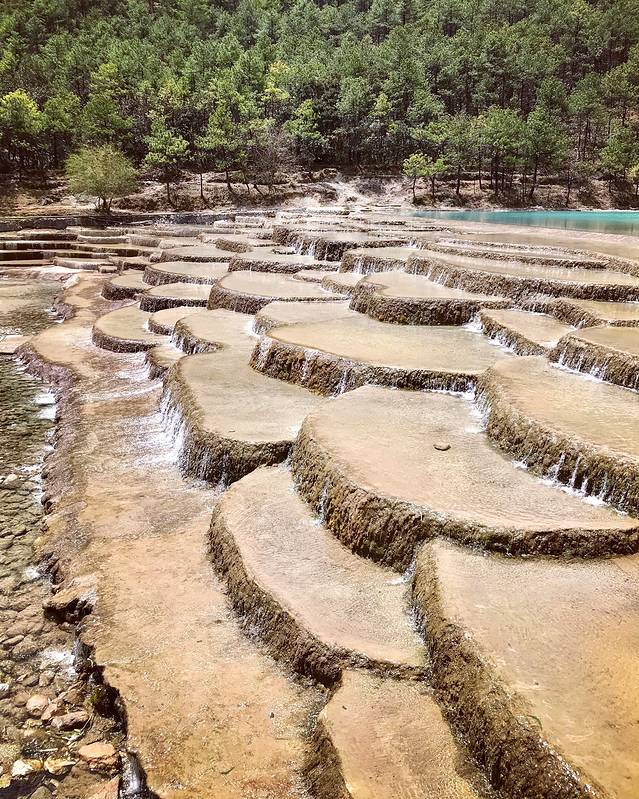 蓝月谷据说是玉龙雪山上雪融化流下来的水,清澈透明,在阳光照射下呈现蓝绿色,堪比九寨沟
