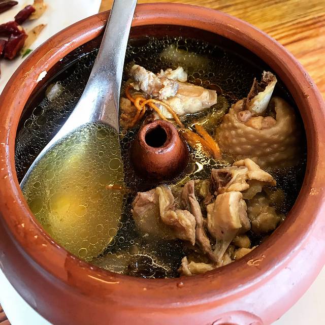 还点了一个羊肚菌汽锅鸡,味道比松茸的重些,我个人比较喜欢