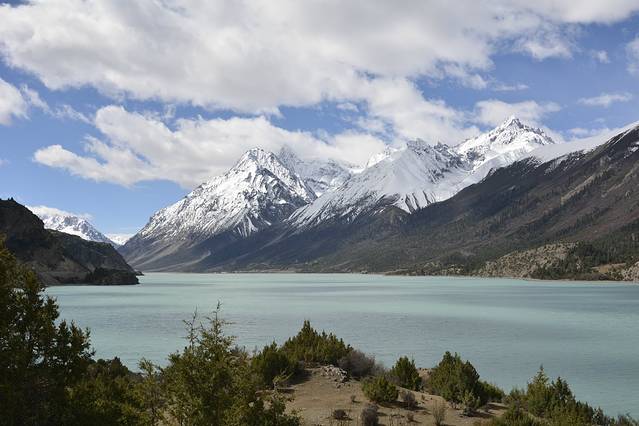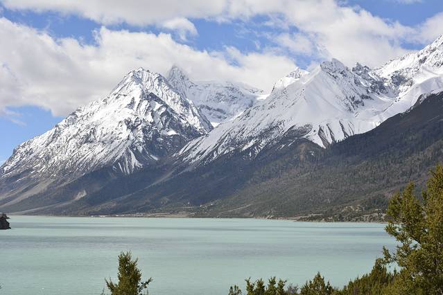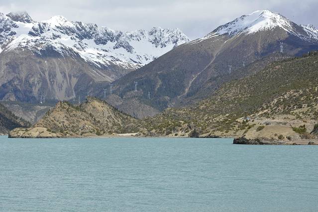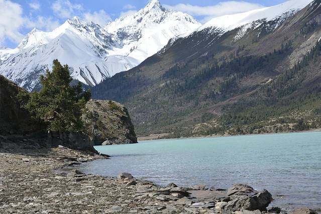 笔直的一级公路,背景是雪山,与昨日不同的美景映入眼帘,行驶1个小时就到了然乌湖。不是夸张景色之美超过了四川的九寨沟以及新疆的喀纳斯。我个人认为是西藏最美的湖泊了。