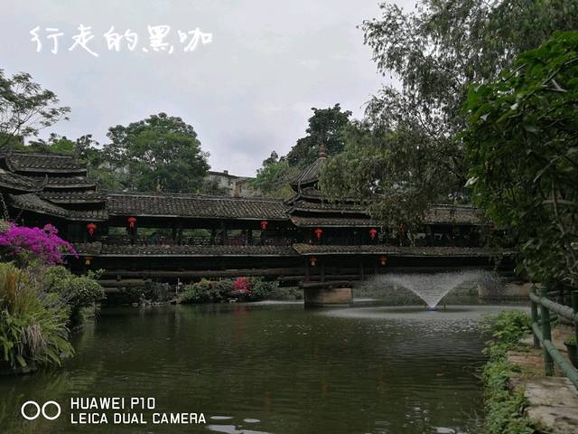 景区修建的各个少数民族寨子,游船靠近时有表演。