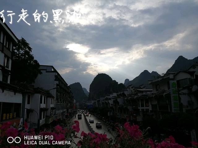 益田西街,青苔石阶,色调鲜明,古色古香,晚上8点大小酒吧开始暖场,青少年的天堂,年轻真好。街尾覌景漓江。