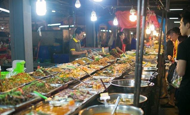 这个周末夜市地址就在奥特莱斯后面一点,可以看到很多老外提着塑料袋里面装着吃的,问问他们就知道地方在哪里了。