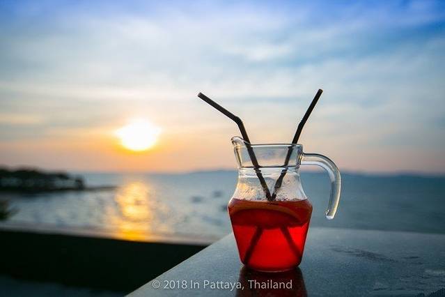 无奈现金不够,不能刷卡,干脆就点个鸡尾酒拍拍照,啤酒润润喉,再搭配一个芒果糯米饭。依靠在躺椅上看看芭堤雅的日落。