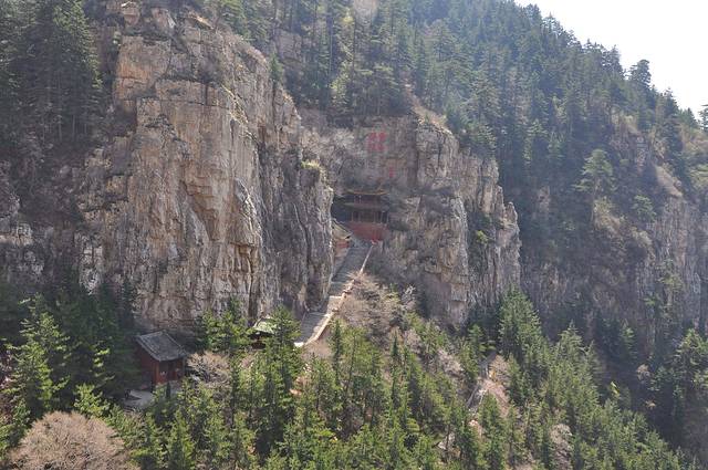 从悬空寺出来,十几分钟就到恒山了。在售票处买好票后,可以直接开车到半山腰的停车场,开始爬山,当然也可以坐缆车上去。