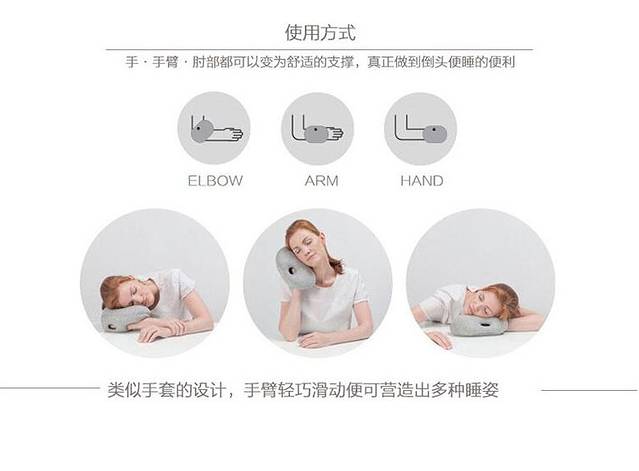 “少了我的手臂当你枕头习不习惯……”《孤单北半球 》中这样一句歌词让许多午休工作族们对睡觉“望尘莫及”,即使有一个很舒服的抱枕或靠垫助你一臂之力,可我们不免还是会嫌弃它们占地大、难洗。于是,最新一款手臂枕头出现在世人面前。
