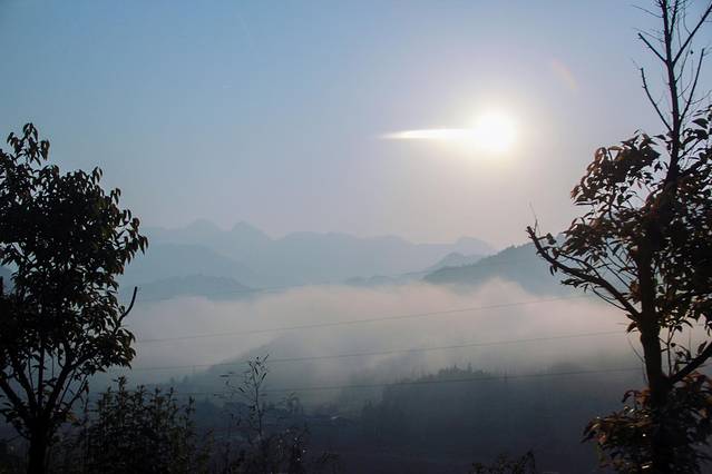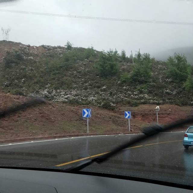 越接近山顶,雨越下越大,能见度也越来越低,我们等了一会,不见雨小,就返程了。回去之后,我们想去客栈附近的湿地公园来着,因为本地人不需要门票即可进入,外地人需要,于是作罢,转身去吃火锅了~😂