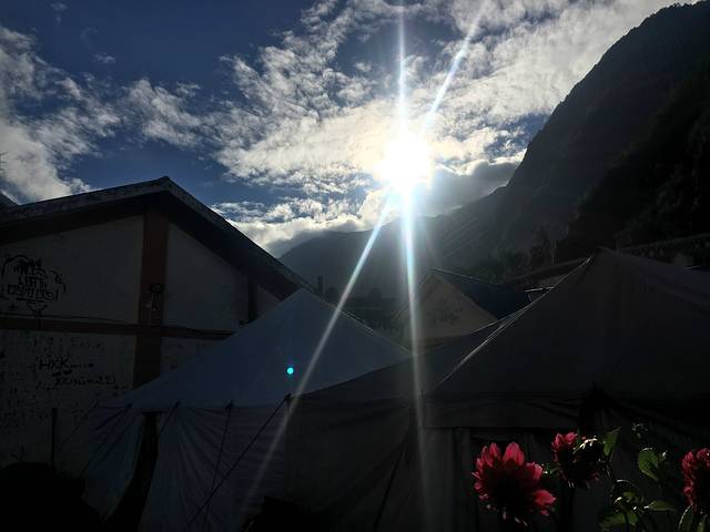 住在一个忘了名字的青旅,只记得在顶楼的花园有很多格桑花和我问过多少次都没记住名字的花,早晨起来,阳光照在花和帐篷上,很美。