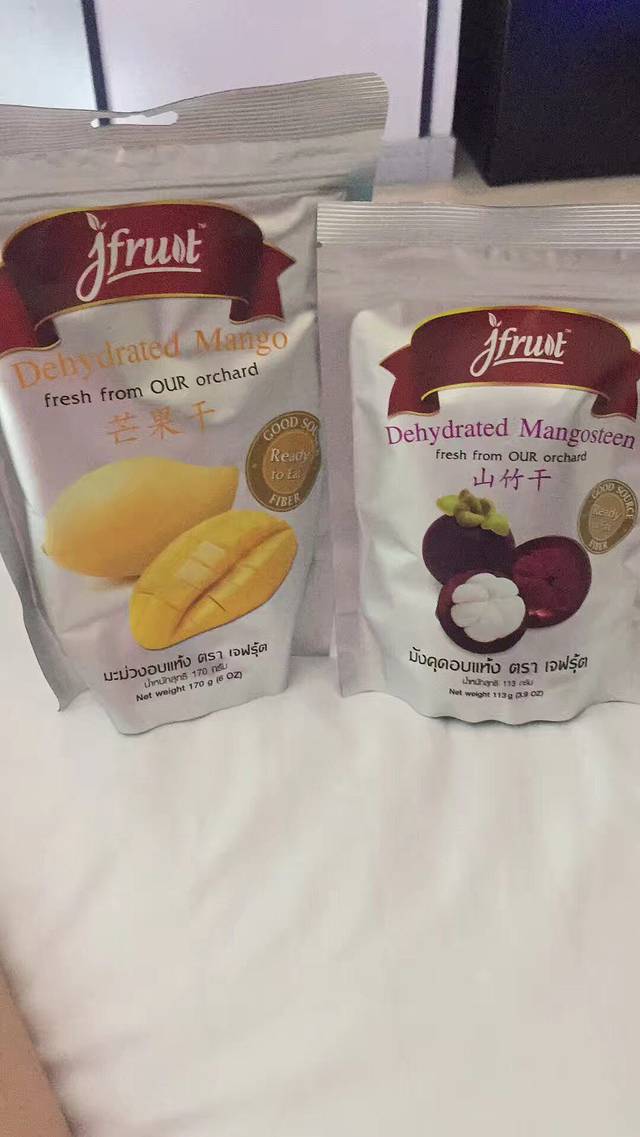 这是我第二次去泰国每次去都必须买这个牌子的芒果干和山竹干,真的超级好吃!不像别的品牌,糖精的成分多一点,她家的跟别的芒果干都不一样,就是纯的芒果晒成的干,而且不干,你们可以买了尝尝,一般只有免税店有卖,而且柜台不是很明显,要好好找找才能找到,或者问一下工作人员