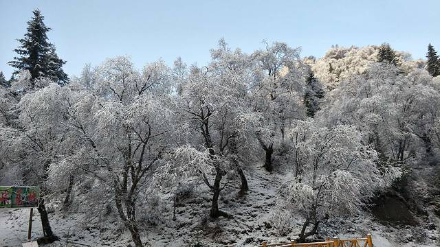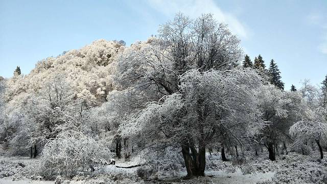 大地万物犹如披上白色婚纱、脉脉含情的女子,妩媚娴静,楚楚动人。叹上天鬼斧神工,赞自然神秘多变,是谁将世界重新雕塑,雕出了美丽,雕出了神奇,雕出了这如梦似幻的琼花玉树。