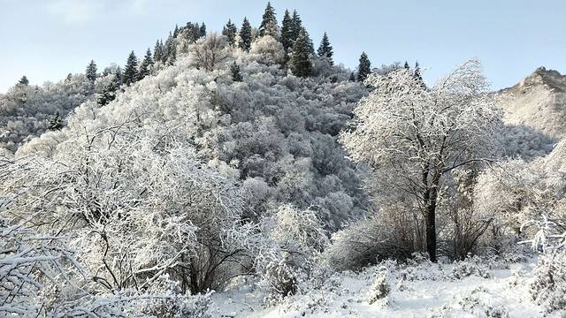 在经历了冬的洗礼,一场瑞雪就像神来之笔让初夏的吐鲁沟焕发出勃勃生机,光彩夺目。蓝天与白雪衔接,山峰与树木共存,声声鸟鸣映衬得山更清静,水更幽深,整个吐鲁沟仿佛就是美丽的冰雪童话世界。