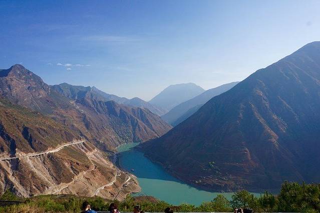 去泸沽湖的途中会停两三次,让我们下来休息拍照,第一站是金沙江,有两个观景台,我们上了右边那个,有树木挡着,左边的应该能看到全景