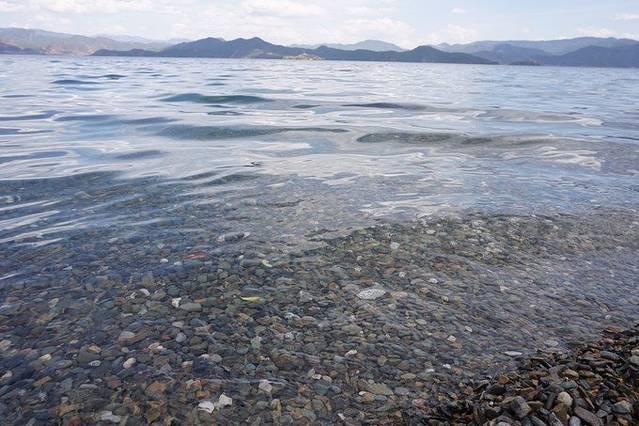 从观景台下来,开始环湖,360度近距离观看泸沽湖。湖水远看是蓝色,近看就是透明的,真的非常清澈干净
