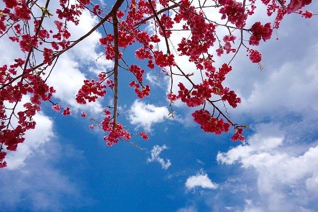 蓝色的湖水上飘着彩色的猪槽船,丰富的色彩,完全的视觉冲击