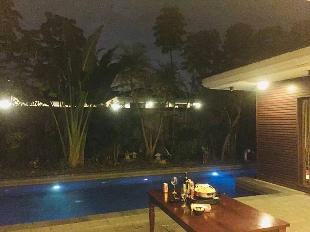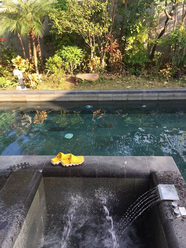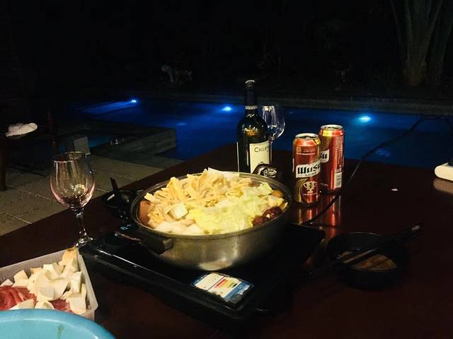 这家水榕庄距离广州100公里,一小时车程就到了,非常方便,预定的印度洋别墅硬件是没得说,300多平方,独立泳池、独立温泉泡池。温泉池比较小,水质也一般,主打的是私家泳池概念。酒店自带烹饪用品餐具,自己带好食材过去就可以在泳池边享受火锅烧烤啦!一打啤酒过后泳池游一圈,上岸泡着温泉闻着花香看星星,感觉很棒!淡季800多,旺季1000多的价格还是值的,如果是一家人一起去玩,非常划算。泳池水不是恒温,冬天去肯定无法下水。预定网站上经常会放出特价,快刀就是抢到的优惠房,周末和假期旺季价格会贵。管家式服务也很到位,随叫随到,一个电话美女就来了,早餐和宵夜也会送到房间。
