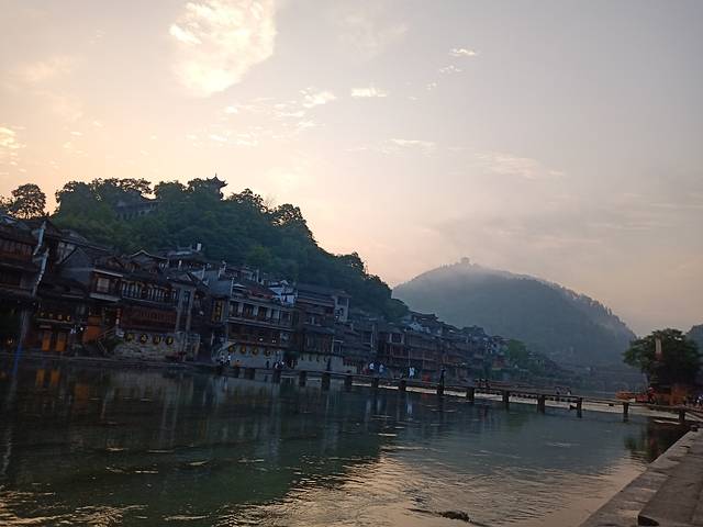古城的夜景非常漂亮,美轮美奂,早上的沱江也别有一番风味。晚上的沱江是热闹的,是属于大家的,早晨的沱江的静寂的,是只属于你一个人的。早上看沱江一定要赶早,我们六点起床,刚去到沱江不久就有一批又一批的旅游团过来了,早上的沱江瞬时就变得非常热闹。