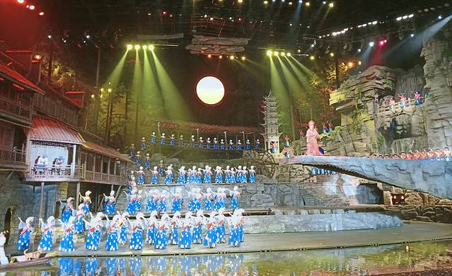 来古城最推荐去看被列入国家非物质文化遗产的边城,把沈从文的边城边城的实景剧来演出,一共有两百多个演员参与演出,画面特别壮观。沱江泛舟和九景就没有去看的必要了,泛舟时间特别短,就是在江上坐个小船,而且没有返程。在船里的夜景还没有在岸边上好看。九景也实在没有什么可看的,就很简单的展示名人旧时的住宅,九处景点有太多相似的地方,实在无趣。