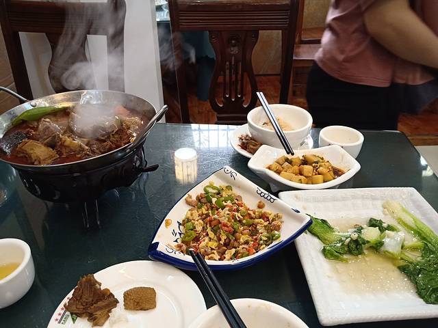 来到古城,可以试一试血粑鸭,这里的特色菜。我们来到的是五哥推荐的醉西湘吃的,用了美团两人餐大概60这样。五哥特别推荐吃石锅鱼,但是我们想着尝一尝这里的特色美食就点了血粑鸭。