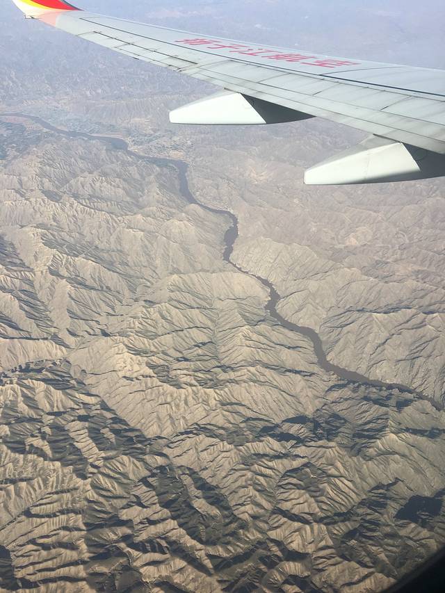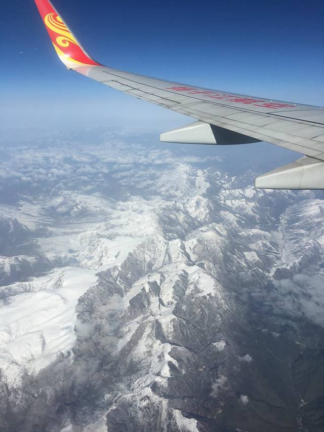 飞机外面的景色真的不错,据说下面就是传闻中的祁连山脉,山顶都是雪,很美